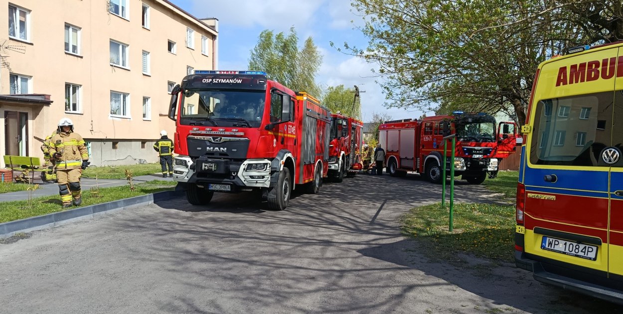 W sobotę 25 kwietnia w budynku wielorodzinnym w Szymanowie doszło do pożaru. Konieczna była ewakuacja mieszkańców.