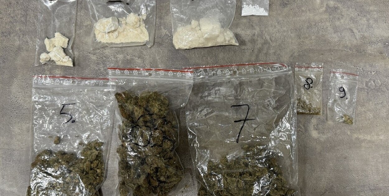 W toku podjętych czynności policjanci przeszukali m. in. piwnicę, gdzie zabezpieczyli marihuanę i amfetaminę o łącznej wadze ponad 130 gramów.