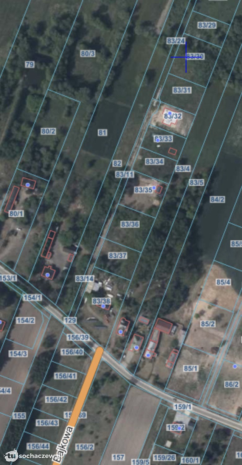 Sprzedam działkę budowlaną o pow. 1774 m2 w miejscowości Adamowa Góra w gm. Młodzieszyn. Dla działki została wydana decyzja WZ z przeznaczeniem na cele budowlane. Wymiary działki to: 43x41 m