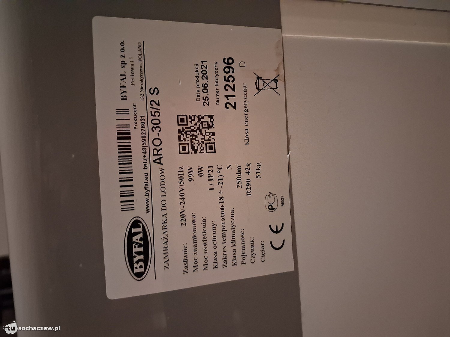 Sprzedam zamrażarkę BYFAL ARO - 305/2 250 l z przeszkloną witryną, używana w bardzo dobrym stanie. tel 601442060 Sochaczew.