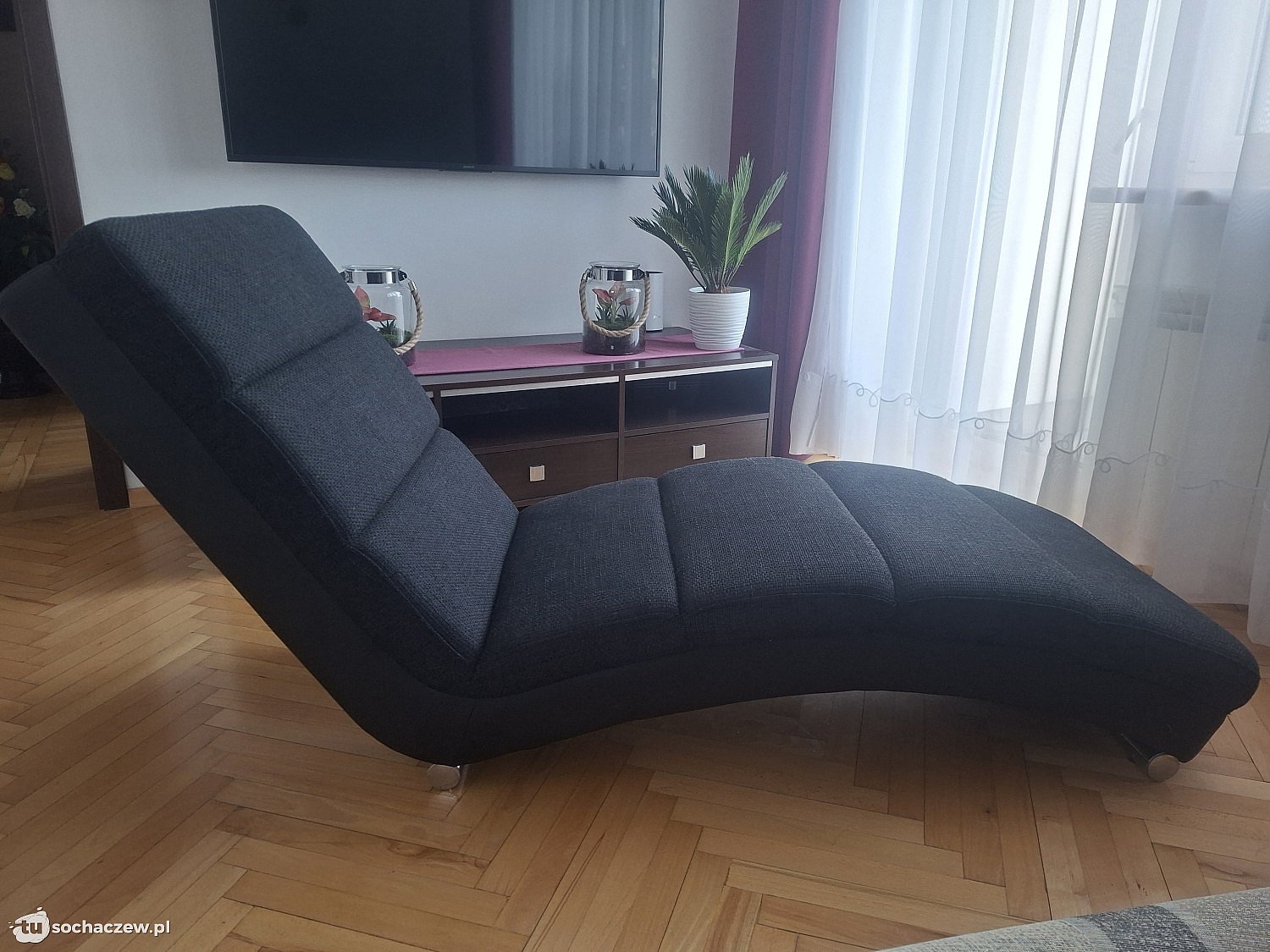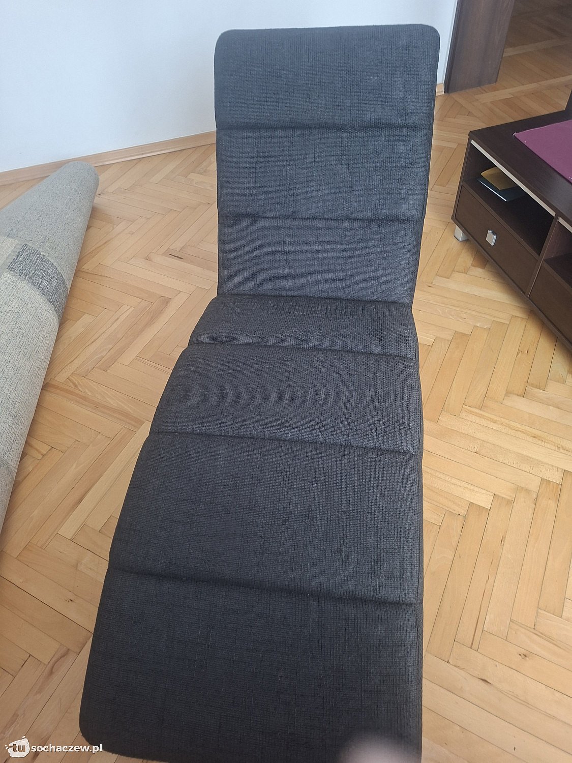 Szezlong używany ,w dobrym stanie . Kolor grafit. Wymiary 170/ 83/ 60.