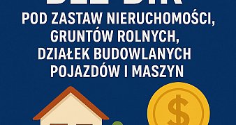 Promuj ogłoszeniePożyczka bez BIK! Udzielamy pożyczek pod zastaw: - nieruchomości - gruntów rolnych - działek budowlanych - pojazdów i maszyn Szybka decyzja, minimum formalności. Atrakcyjne oprocentowanie Nie ... czytaj więcej
